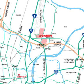 花巻流通業務団地は、いわて花巻空港、東北横断自動車道花巻空港IC、国道4号バイパスに隣接し、東北新幹線新花巻駅に近接する、全国で最も集中的に高速交通インフラが整備された団地です。 これにより、岩手はもとより青森・秋田を配送圏域とする様々な業種の物流拠点(ロジスティクスセンター)として、最速・最適な条件が整っています。