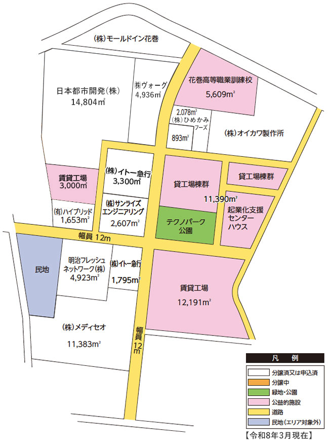 花巻第一工業団地の第二期工事として整備したテクノパークは、東北縦貫自動車道花巻ICに隣接し、いわて花巻空港・東北新幹線新花巻駅に近接しており、国内有数の高速交通インフラの整備を背景とする優れた立地条件のもと、新事業創出・ベンチャー支援を行うための戦略的工業団地としての性格を持ち高い技術力を有する産業の更なる集積を図っています。(令和6年完売)