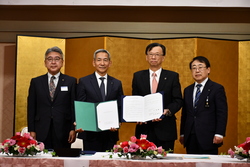 [左から、宮野岩手県土地開発公社理事長、松井取締役社長、上田花巻市長、瀬川岩手県商工労働観光部ものづくり自動車産業振興室長]