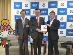 当日はグループ企業の東北日東工業(株)(花巻市二枚橋)から稲垣政志代表取締役が来庁され、市の教育振興に対する寄附金として300万円を贈呈いただきました。なお、同社からの寄附は、平成8年度から通算で8回目となります。
