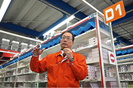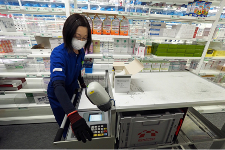 このセンターは、物流担当と営業担当の2つの職種で成り立っています。物流担当は240名いて、出庫、配送、事務の3つの仕事に分かれています。営業担当は20名いて、地元出身者が増えてきました。出庫担当には40代、50代の方もいますが、当社開発のハイテクカートSPIECによるピッキングシステム(医薬品を、楽に早く正確に出庫できる独自システム)で、誰でも2時間ぐらいの講習で現場に立てるようにマニュアル化しています。機械がいっぱいありますが、仕事が覚えやすく尚且つミスの少ない環境なんです。間違いのない仕事というのがお客様の信頼を得るためには大切なことですから。
